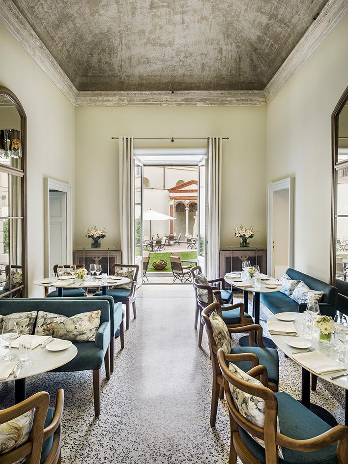 Hong Kong-based design firm AB Concept has thoughtfully restored the handsome villa, originally built in 1830 by architect Nicola Dordoni for the noble Reina family. Dove grey walls, minimal lighting by glassmaker Lasvit and custom furniture by Promemoria leave space for the building’s exquisite original features — vaulted frescoed ceilings and Venetian terrazzo floors — to breathe.